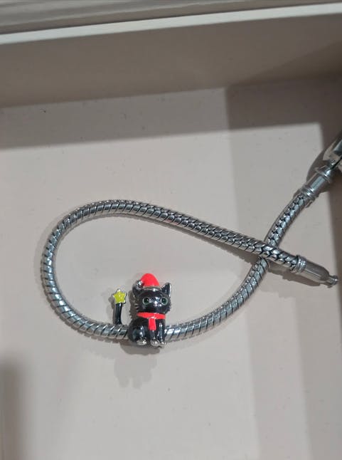 JYC119Meet our magical Christmas Black Cat Charm, a 12mm festive accessory featuring an adorable black cat wearing a glowing red Santa hat and scarf that illuminates in the dark, complemented by a shining yellow star on its tail. Perfect for cat lovers and Christmas jewelry collectors, this luminous charm adds a playful glow to any bracelet or necklace while keeping your holiday style festive and fun. Ideal for Christmas parties, festive gatherings, or as a unique seasonal gift, this glowing cat charm brings magical cheer to all your winter celebrations.