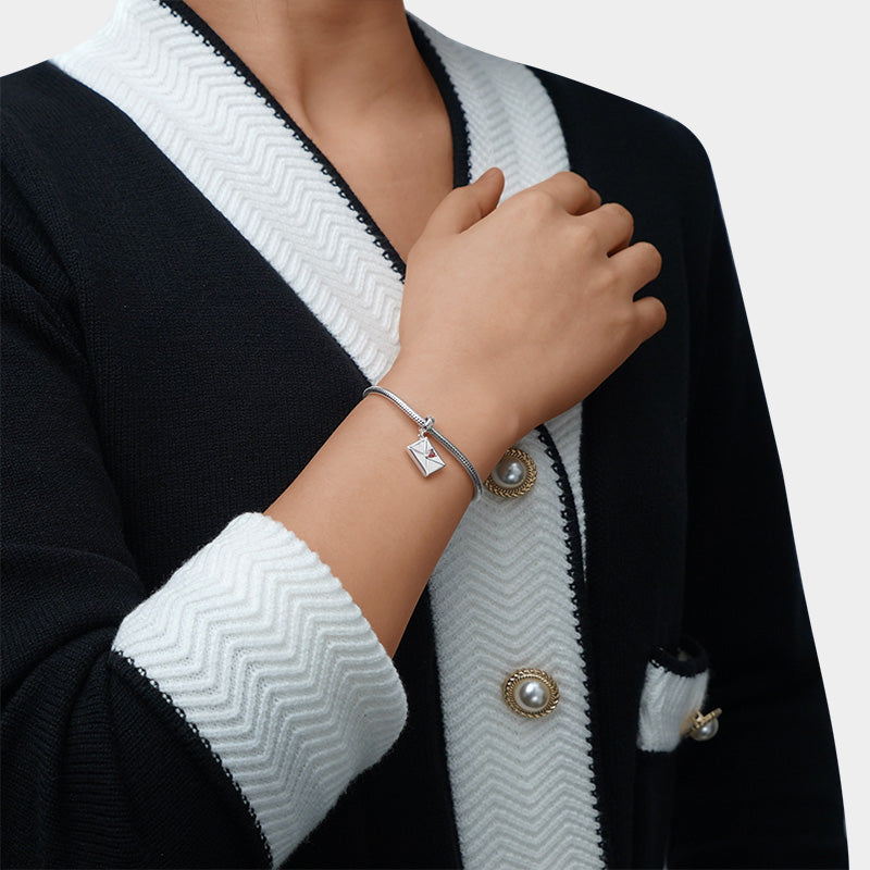Expressed the words of love with an Openable Envelope Love Letter Engravable Pendant Dangle Charm. Handcrafted in 925 sterling silver, this envelope could be openable, it has a card addressed "love your more" inside, and then sealed with a red CZ stone heart. The amazing one is that it could engrave your lover's name on the back. A wonderful gift for Valentine's Day that records these memories that are cherished for a lifetime