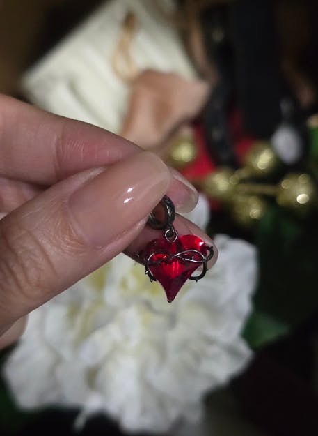 The Dark Heart of Thorns Pendant features a striking red heart that pulses with life, beautifully entwined in intricate thorns. This captivating design symbolizes the duality of love and pain, representing passion and resilience.