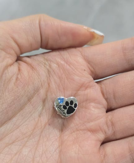 The Personalized Loving Pet Paw Photo Charm is a heartfelt tribute to your furry friend crafted from 925 sterling silver. This charm allows you to upload a cherished photo of your pet, alongside customizable options for their name and birthstone.