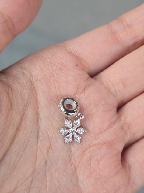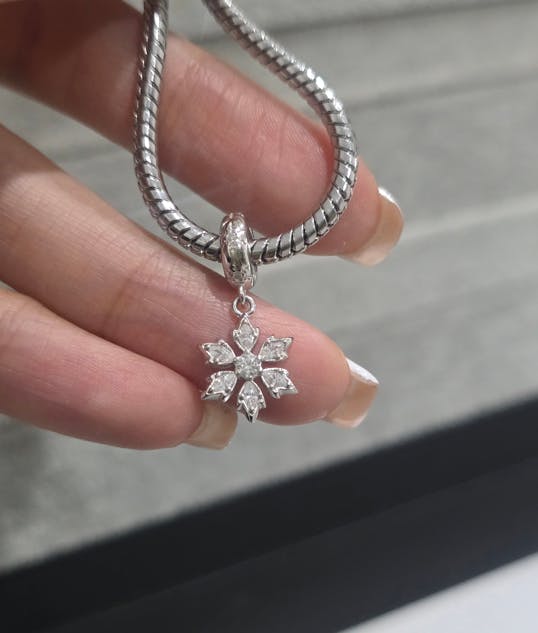JVC006Capture the magic of winter with this exquisite snowflake stopper pendant. Meticulously crafted from 925 sterling silver, its delicate snowflake design adorned with glittering CZ stones adds a festive sparkle to any bracelet. This versatile piece not only brings Christmas charm to your jewelry but also functions as a practical stopper to secure your beads in place. A beautiful blend of holiday spirit and functionality for the festive season.