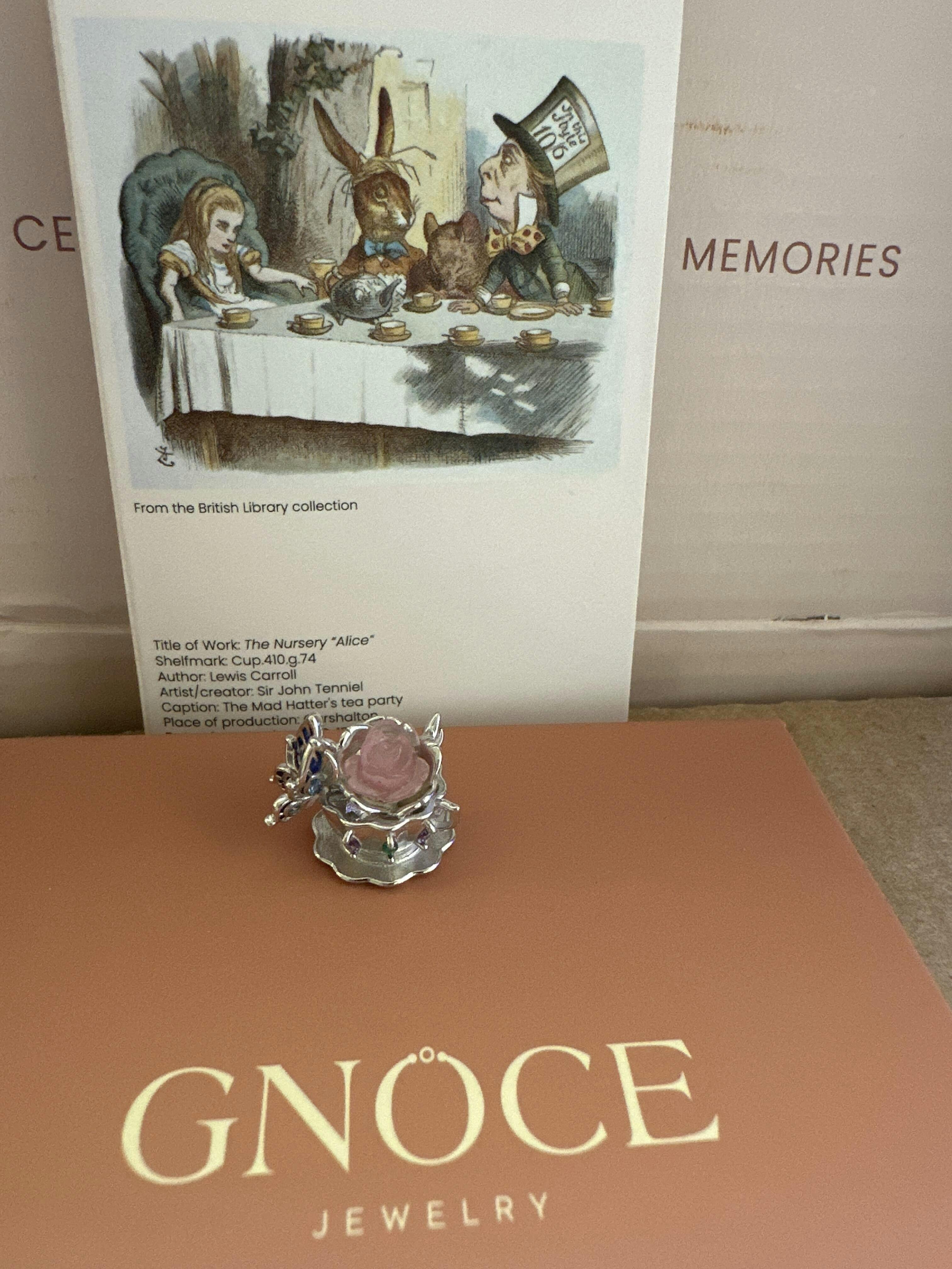 Color Changing Teacup Blue Butterfly is beautiful from little stones on teacup, blue butterfly on the side and the color changing flower inside of teacup part of British Library - The Nursery Alice collection.